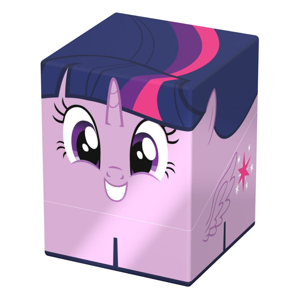 Collectible box for storing TCG decks, tabletop gaming accessories, and/or collectibles. The Twilight Sparkle Squaroe from the My Little Pony "Friendship is Magic" edition holds up to 100 cards in double protective sleeves if used as a deck box. Squaroes are made from 78% renewable recources.