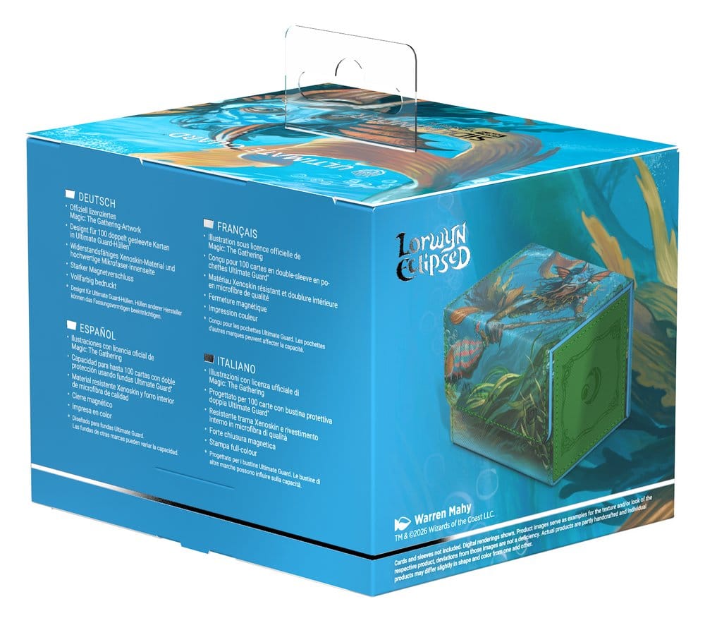 Ultimate Guard's Sidewinder 100+ Xenoskin is a premium Magic: The Gathering deck box offering exceptional card protection with its durable Xenoskin material, microfiber inner lining, and strong magnetic closure—all while providing easy and convenient access to the cards inside. With space for 100 double-sleeved cards in Ultimate Guard sleeves* and printed with officially licensed artwork from Magic: The Gathering's "Lorwyn Eclipsed" set, the Sidewinder 100+ Xenoskin is the perfect MTG deck box for all Magic formats (Commander/EDH, Modern, Standard, etc.). Designed to combine with Ultimate Guard's Omnihive, Superhive, and Smarthive mass storage boxes.The Sidewinder 100+ made from durable Xenoskin material holds up to 100 double-sleeved cards*, which are kept secure in the deck box thanks to a strong magnetic closure and soft microfiber inner lining. The durable, high-quality Xenoskin surface of the Sidewinder is printed in full color with officially licensed artwork from Magic: The Gathering's "Lorwyn Eclipsed" set.