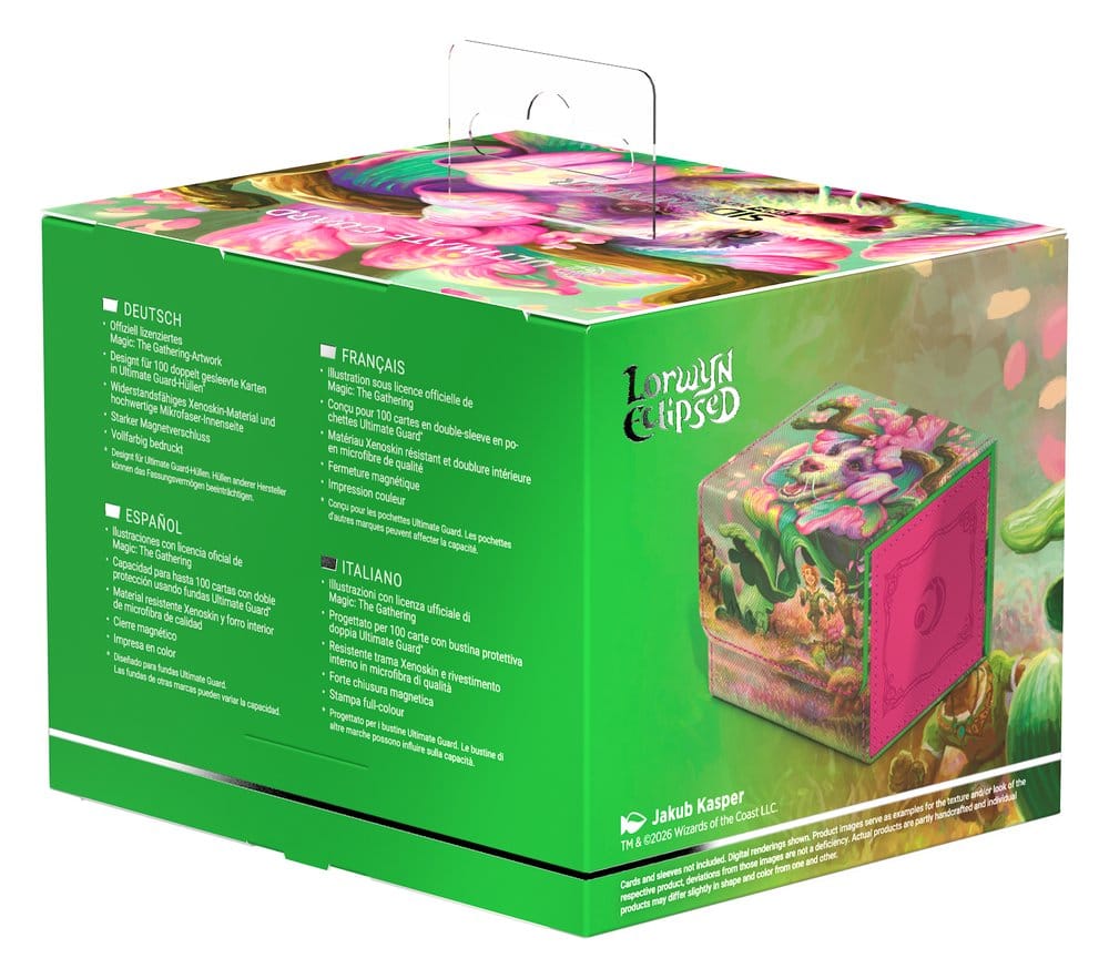 Ultimate Guard's Sidewinder 100+ Xenoskin is a premium Magic: The Gathering deck box offering exceptional card protection with its durable Xenoskin material, microfiber inner lining, and strong magnetic closure—all while providing easy and convenient access to the cards inside. With space for 100 double-sleeved cards in Ultimate Guard sleeves* and printed with officially licensed artwork from Magic: The Gathering's "Lorwyn Eclipsed" set, the Sidewinder 100+ Xenoskin is the perfect MTG deck box for all Magic formats (Commander/EDH, Modern, Standard, etc.). Designed to combine with Ultimate Guard's Omnihive, Superhive, and Smarthive mass storage boxes.The Sidewinder 100+ made from durable Xenoskin material holds up to 100 double-sleeved cards*, which are kept secure in the deck box thanks to a strong magnetic closure and soft microfiber inner lining. The durable, high-quality Xenoskin surface of the Sidewinder is printed in full color with officially licensed artwork from Magic: The Gathering's "Lorwyn Eclipsed" set.